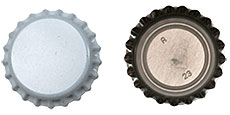 Steel caps with an oxygen absorbing liner that is activated by moisture. White painted finish. 26mm diameter fit all standard US and imported beer bottles.