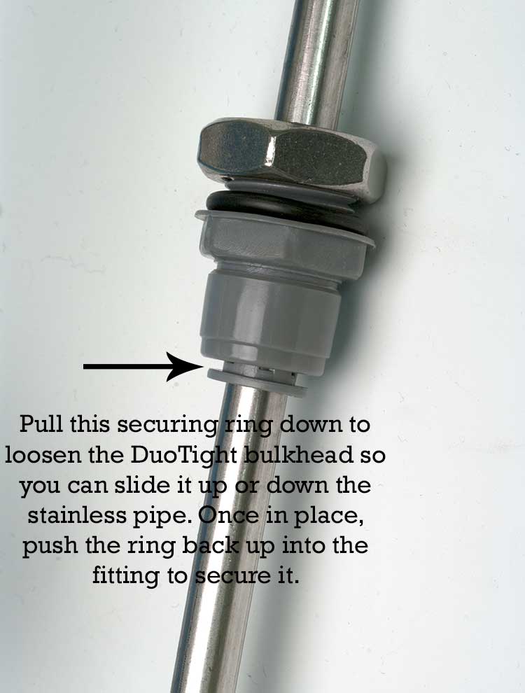 The stainless tubing itself is 9.8mm (.37") in diameter, and Duotight bulkheads are included to attach the pipes to your fermenter lid. You can also attach 3/8" tubing with hose clamps if desired to the tubing ends to run your cooling or heating water.