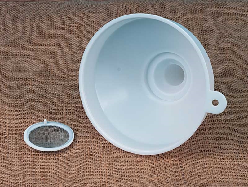 An 6" diameter food-grade plastic funnel that fits inside the neck of all glass carboys. Includes a snap out 2” nylon filter screen for filtering out fine particles.