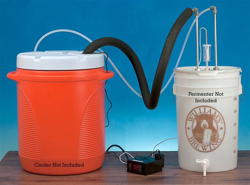The included item Q91 Programmable Dual Controller allows for precise temperature control. The 12 volt submersible pump features suction cups for mounting to any smooth surface. The long 68" (5.5') hoses mean you can position your ice water bucket and fermenter up to 5' apart for easier setup.