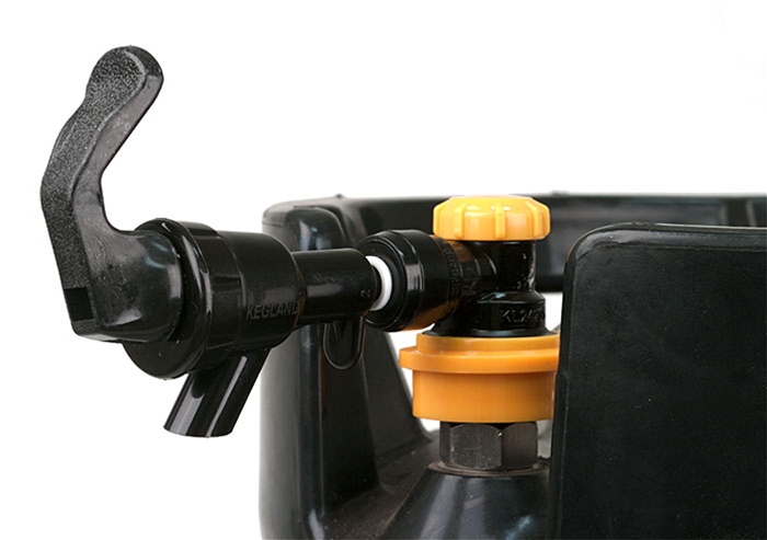 This ball lock keg faucet fits the OUT fitting on any ball lock keg, and lets you dispense directly from the keg. Lightweight, compact, and easy to use.