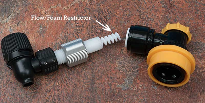 The Low Profile Picnic Tap 2.1 from Homebrewer Labs is the only keg mounted tap to feature an Integral Progressive Flow Reducer, capped off with an American made twist tap head to prevent dripping between pours. The Progressive Flow Reducer eliminates excessive foaming without the need for a long beer line, and the low thermal mass of the unit means there is less faucet to cool down when pouring the first beer, further minimizing foaming caused by a warm faucet.