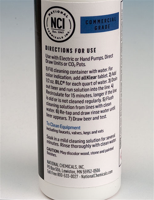 Metal-safe beer line alkaline based cleaning solution loosens soils and mineral deposits from beverage lines, coils, cold plates, faucets, and more. Use ½ ounce per quart of water. Great for cleaning out Kegerator and other draft beer lines.