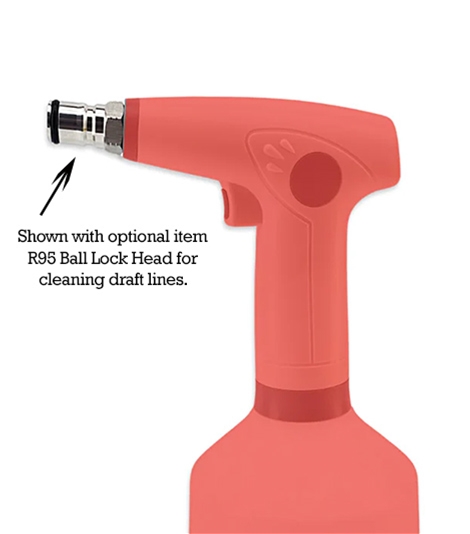 This 1 Liter Power Sprayer has two uses in brewing. One is for spraying down brewing equipment with sanitizer or dissolved cleansers, and two for cleaning out draft beer lines with the optional item R95 Ball Lock Sprayer Head.