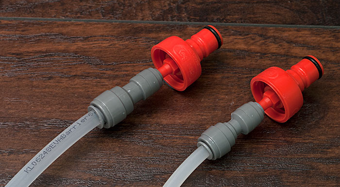 This molded male ball lock valve coupling cap that fits a 2 liter or smaller plastic soda bottle with a 28mm screw cap lid. This allows the 2 liter bottle to be charged with C02 from any female ball lock gas fitting (like our item D32 or D03 Gas Connector), carbonating the cold beverage in the bottle. Great for serving draft beer away from the keg. Also fits the 27 and 55 Liter Brewzilla in and out ports on the lid (except the Flat Bottom 30 Liter Brewzilla), and the Brewzilla Collection Jar ports for pressurizing the Brewzilla fermenter. The hose barb on the bottom is also compatible with our DuoTight fitting Z84 and C55 which lets you easily attach a ball lock fitting to an EvaBarrier 8mm or 9mm outer diameter line.