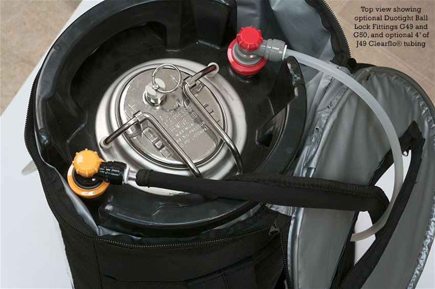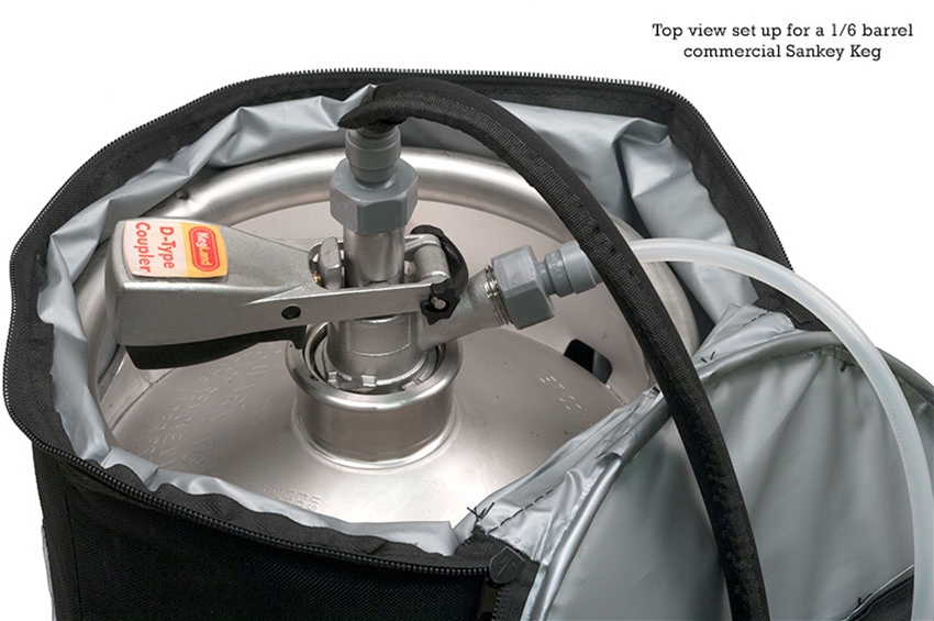 This product has been designed with durable buckles, strong nylon straps, waist strap and fully hot tape seamed internal lining that is waterproof so no dripping water all over the floor. This product has been designed to take a 5 gallon ball lock or 5 gallon Sankey commercial keg (pony keg) which are not included. The insulated bag will keep the keg cold for hours especially if you fill the bag with ice.