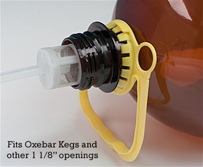 This 1 1/8" diameter filter fits Oxebar kegs. The inlet is designed for 6.35mm outer diameter tubing, like our EvaBarroer tubing item L56.