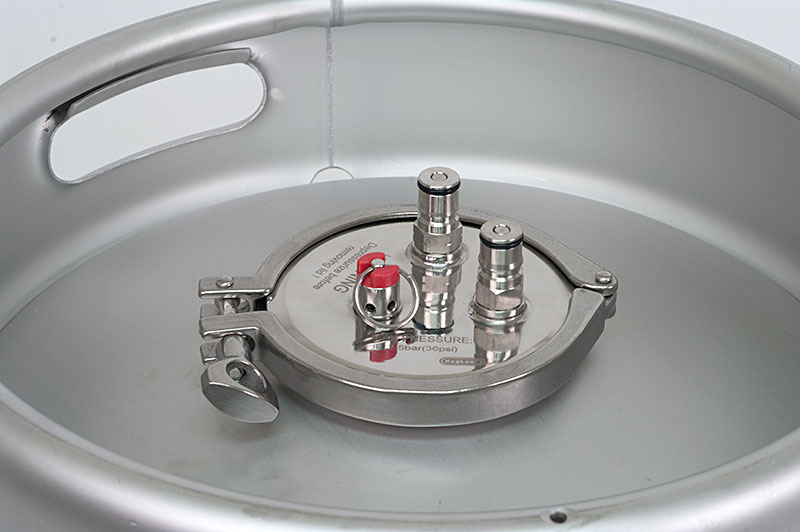 The Kegmenter features a 50 PSI rating (with an included lid red relief valve set at 35 PSI) so it can be used as a keg or as a pressurized fermenter if desired. The 4” diameter lid makes it easy to clean out, and adds the ability to add dry hops and other additives either during a ferment or after kegging. The relief valve is standard Corny style, and can be swapped with other corny compatible valve with different pressure ratings.