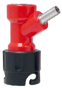 Made in Germany by C.M. Becker. Female fitting for the beer side of a pin-lock keg. This fitting is barbed, and fits 3/16 or 1/4" inner diameter beer tubing. This fitting is 2.5" tall.