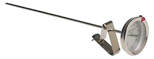Features a sliding red metal pointer, so you can set a reference point. This is particularly handy when mashing (set the pointer to 150 to 155 degrees F.) or while waiting for the boil to begin (set it at 212 degrees F.).