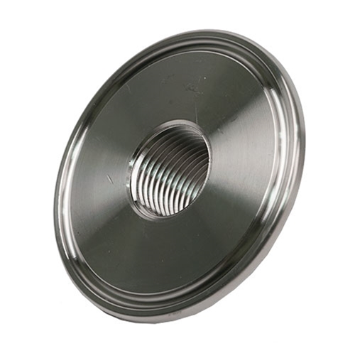2" Tri Clamp Cap with ½" straight female thread which accepts ½" male NPT and ½" male British Straight Thread fittings. Made of type 304 stainless.