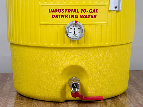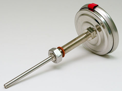 Do you want to monitor the temperature of your 5 or 10 gallon Igloo or Rubbermaid (and Home Depot) cooler while you are mashing or storing sparge water? The Coolview™ thermometer from Brewer's Edge®, features a cooler-specific 100° to 200° F. Range, and a sliding red reference pointer so you can set it at mash or sparge water temperature. The 2" dial features a calibration nut for fine tuning the temperature if desired, as well as a unique 1 3/4" long threaded stainless barrel that is 5/16" thick, so it can be installed in thick cooler walls by just drilling a 5/16" hole. Click on the More Info link above to see a photo of the back of this thermometer.