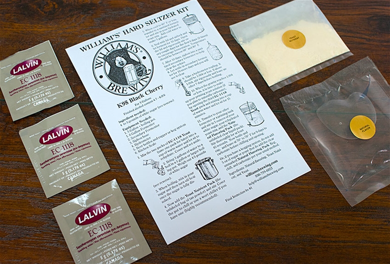 We sourced our natural liquid flavors from a leading supplier of craft beer flavorings, and test brewed dosages to determine a flavor level that is perceptible without being cloying or overwhelming. For yeast, we picked the clean fermenting Lalvin EC-1118 Champagne Yeast, a rugged yeast that leaves very few flavors, and settles out completely to eliminate the need for filtering. To assist the yeast in fermenting the nutrient-free sugar base, we have included a generous amount of blended yeast nutrient.