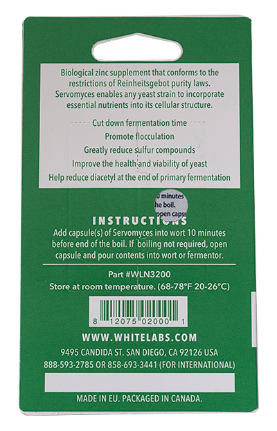 What is Servomyces? Servomyces is yeast that is propagated in a micronutrient rich environment then, and is killed off prior to packaging. The benefit of Servomyces is that micronutrients, for example zinc, are able to pass through its cell walls to your live yeast cell, thereby delivering the micronutrients without toxicity. Servomyces is GMO free and was originally developed for German brewers by Weihenstephan and the Munich University.