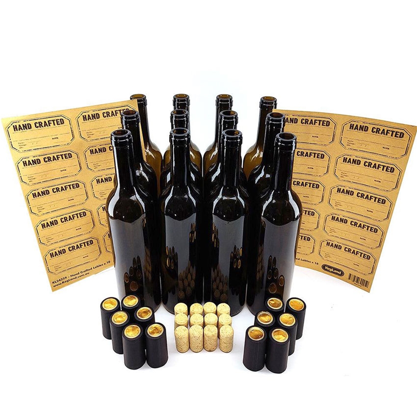 If you need proper bottles to go with your wine, we have these punted dark olive glass wine (burgandy style) bottles. These bottles have a 3/4" inner neck diameter to take a #8 or #9 sized cork, are 13" tall, and 3 1/8" diameter at the base. 12 per case. These are new bottles, and include 12 #8 agglomerated corks (which work well with hand corkers as well as bench corkers), shrink fit cork hoods, and 12 bottle labels.