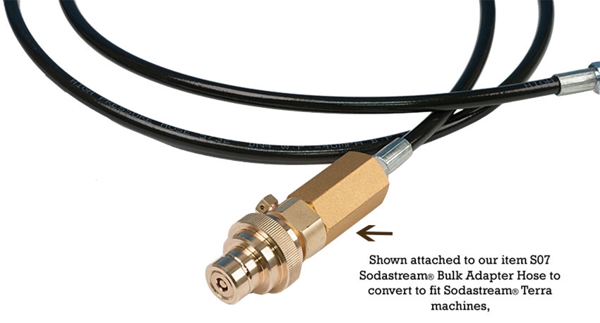 This solid brass adapter lets you attach the item S07 Sodastream® Screw On C02 Bulk Adapter to a newer Sodastream® Terra machine.